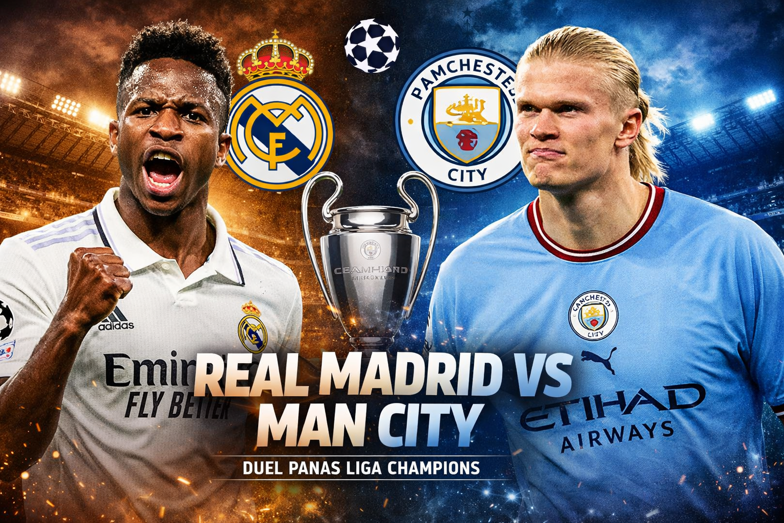 Pertandingan antara raksasa Spanyol Real Madrid dan juara Inggris Manchester City kembali menjadi salah satu duel paling dinanti dalam UEFA Champions League musim ini. Dua klub yang dalam beberapa tahun terakhir selalu menjadi kandidat kuat juara akan kembali saling berhadapan dalam pertandingan yang diprediksi berlangsung sengit dan penuh drama.